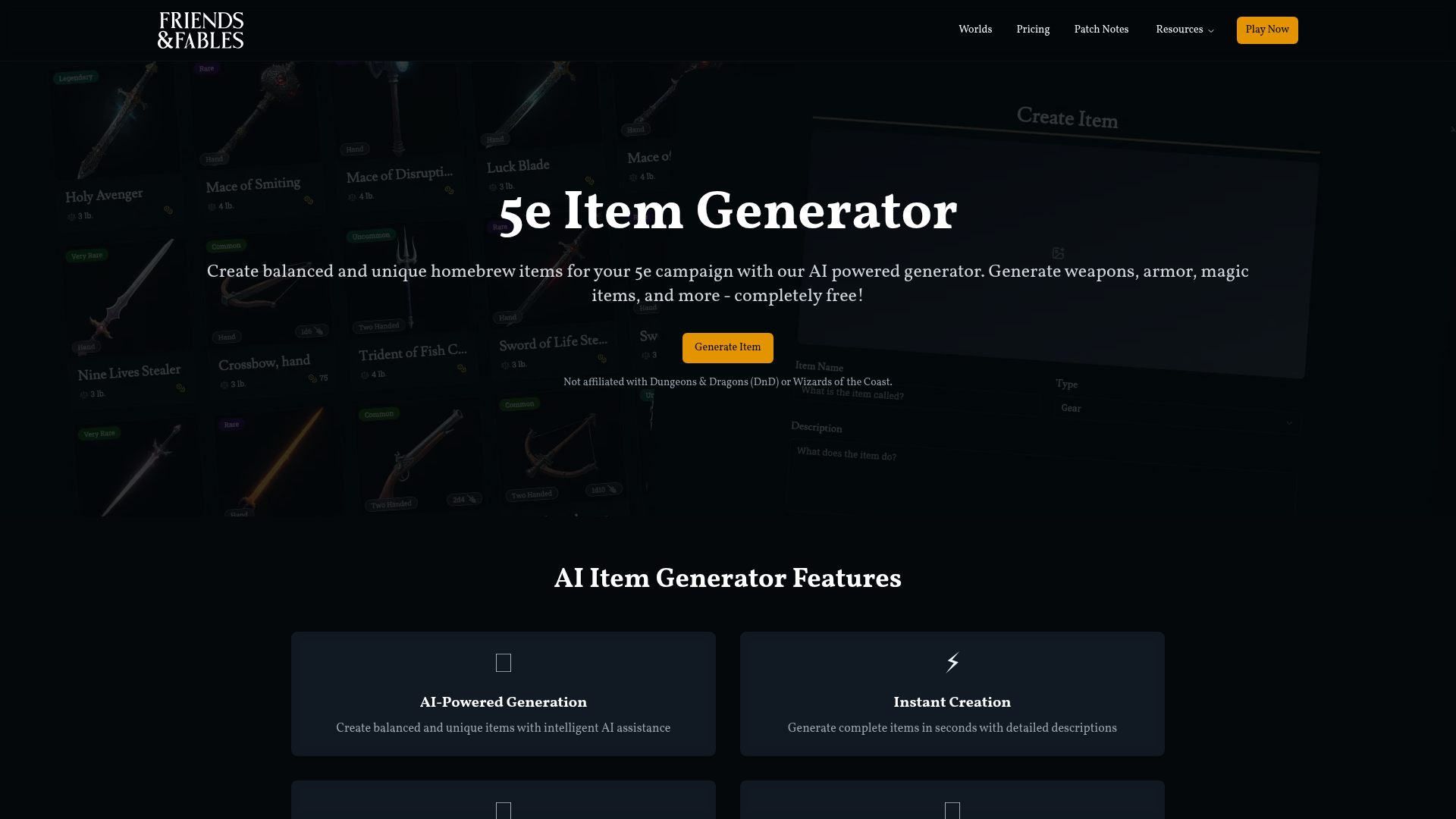 Friends & Fables 5e Item Generator
